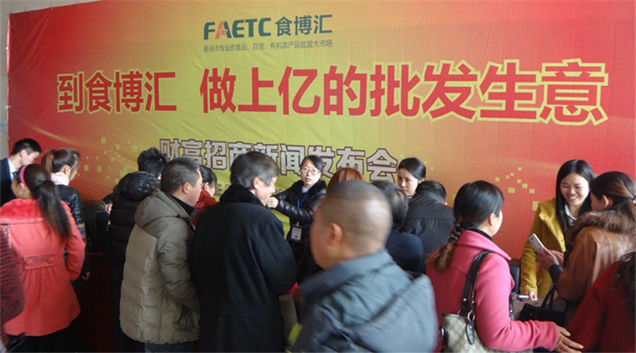 2015年1月15日,主題為“到食博匯,做上億的批發(fā)生意”的食博匯招商新聞發(fā)布會在新余會展中心隆重舉行。新余市各級政府領導、食品百貨行業(yè)協(xié)會領導、新余商盛置業(yè)相關領導、食博匯戰(zhàn)略合作單位,及近200名國內外知名行業(yè)廠商代表、800多位新余當?shù)貙嵙εl(fā)代理商共同出席了本次活動,一起見證了此次新余副食百貨業(yè)內極具意義的盛會。會上,新余市商盛置業(yè)董事長陳生根詳細介紹了該項目的具體規(guī)劃及未來發(fā)展前景,引發(fā)了與會廠商、代理商的熱烈討論,同時也標志著整個贛西地區(qū)的食品百貨行業(yè)將開啟全新的格局。