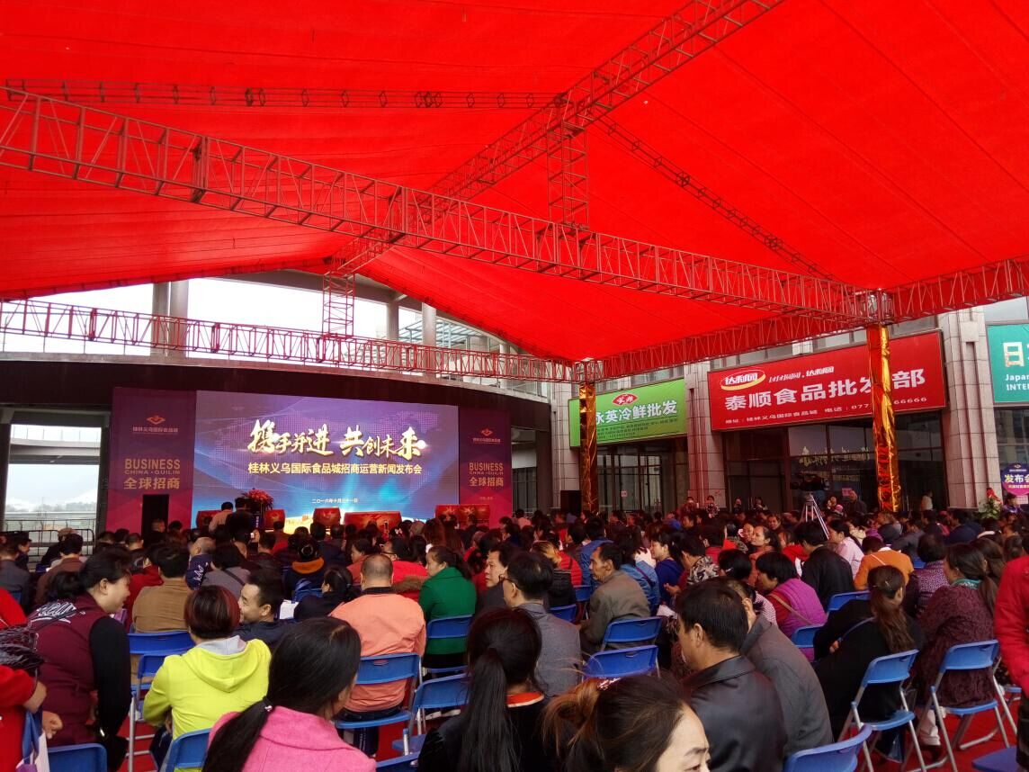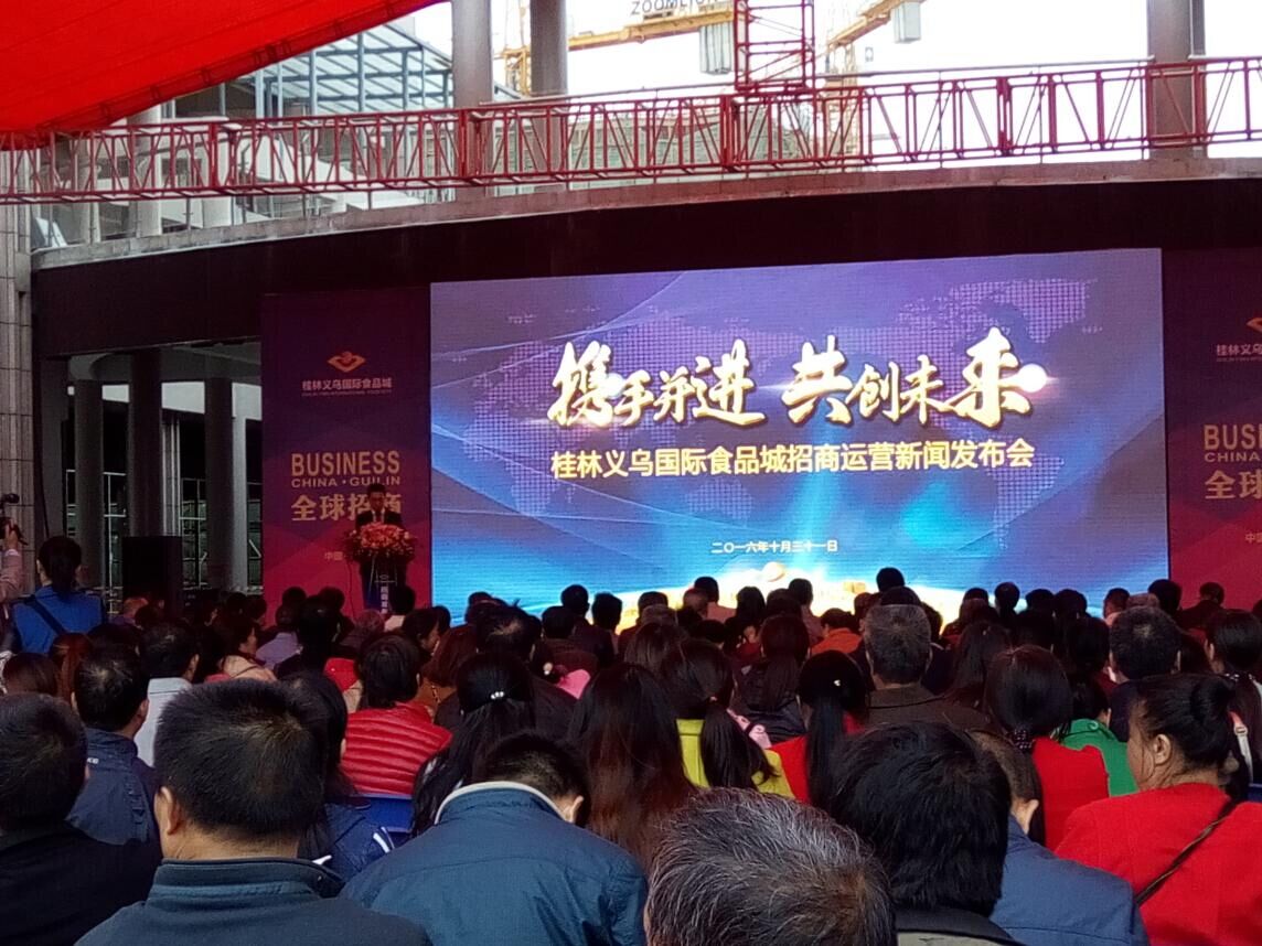 沒有華麗的場面鋪張,沒有狂轟濫炸的廣告宣傳,10月31日,桂林義烏國際食品城招商運營新聞發(fā)布會低調(diào)而有格調(diào)地綻放了。與低調(diào)宣傳形成鮮明對比的是現(xiàn)場火爆的氣氛,千平米活動中心廣場,高朋滿座,賓客云集。