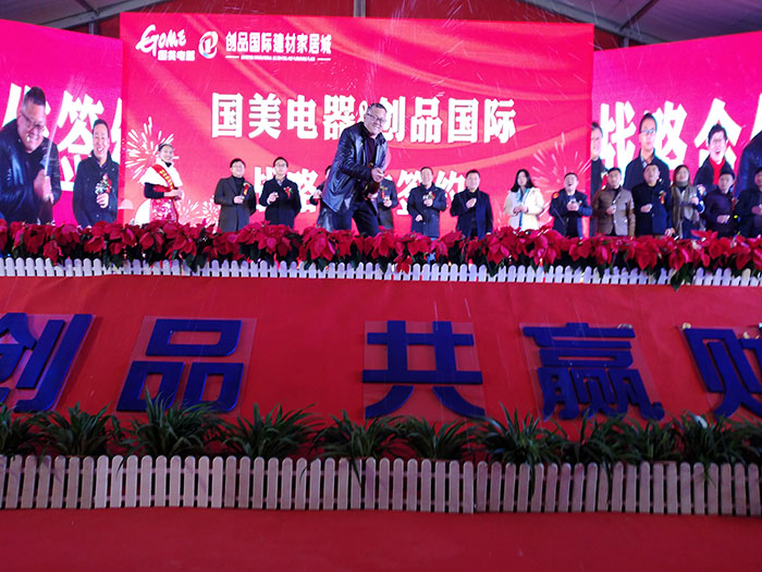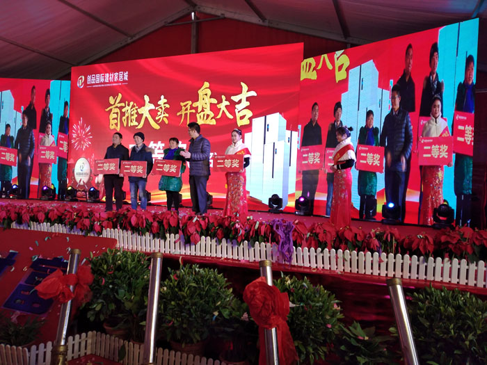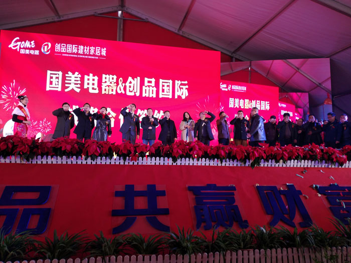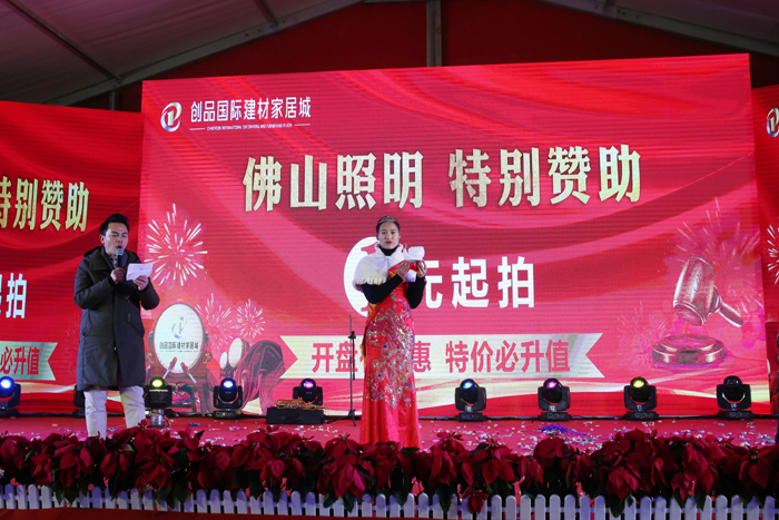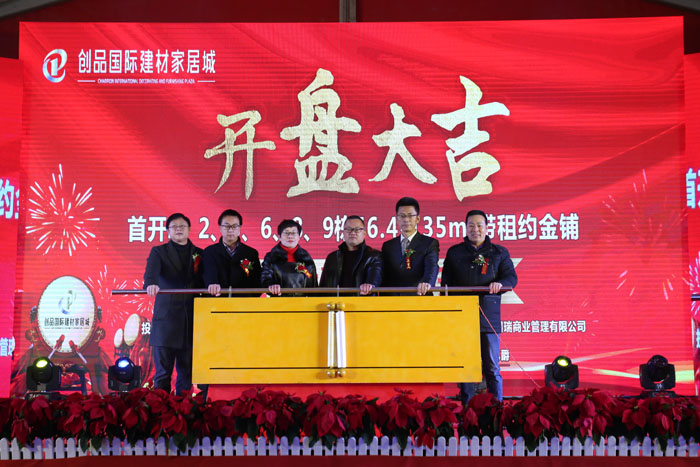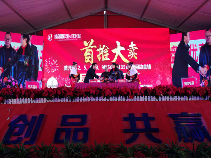 開盤儀式隨著創(chuàng)品國際董事長陳春平先生敲響銅鑼聲中宣布創(chuàng)品國際建材家居城正式開盤。