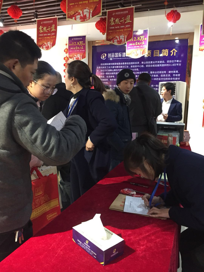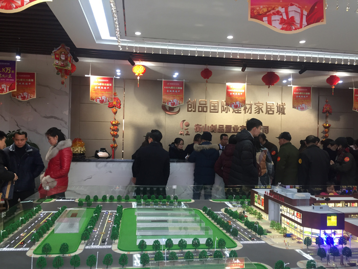 2018年2月4日,立春。創(chuàng)品國際項目一期盛大開盤,現(xiàn)場800余商戶、投資客、新聞媒體齊聚一堂,共同見證衡山首個建材家居專業(yè)市場開盤這一商業(yè)盛況。