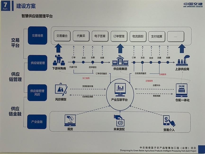 本項(xiàng)目區(qū)別于南京地區(qū)的眾彩市場(chǎng)和天環(huán)市場(chǎng)模式,中農(nóng)儲(chǔ)農(nóng)產(chǎn)品生態(tài)交易項(xiàng)目的經(jīng)營(yíng)重在打造“供應(yīng)鏈體系”。農(nóng)產(chǎn)品供應(yīng)鏈體系是從農(nóng)田到消費(fèi)者手中,涉及到農(nóng)產(chǎn)品計(jì)劃、種植、生產(chǎn)、采購(gòu)、加工、運(yùn)輸、銷售、結(jié)算等環(huán)節(jié)的一系列流程和活動(dòng)。它包括了農(nóng)產(chǎn)品的種植或養(yǎng)殖、采摘或收割、初加工、包裝、交易(分銷和零售)、運(yùn)輸、倉(cāng)儲(chǔ)、投資和結(jié)算等環(huán)節(jié)。中農(nóng)儲(chǔ)農(nóng)產(chǎn)品生態(tài)交易項(xiàng)目的目標(biāo)是為實(shí)現(xiàn)農(nóng)產(chǎn)品從生產(chǎn)者到消費(fèi)者的高效、安全和可持續(xù)的流通提供供應(yīng)鏈體系服務(wù)。
