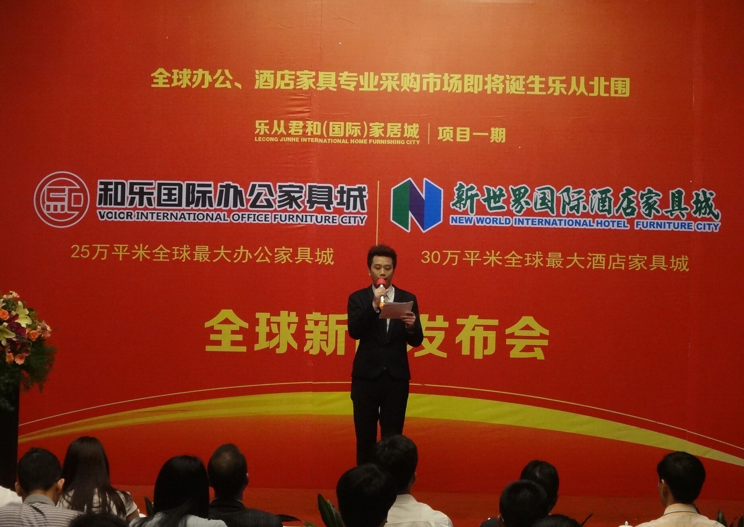 5月20日上午,廣東君和國際在佛山知名的五星級酒店——樂從財(cái)神酒店,隆重召開“全球最大辦公、酒店家具專業(yè)采購市場即將誕生樂從北圍暨樂從君和(國際)家居城項(xiàng)目一期:全球最大辦公家具城——和樂國際辦公家具城,全球最大酒店家具城——新世界國際酒店家具城”新聞發(fā)布會(huì)。