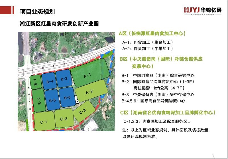 項(xiàng)目位于長(zhǎng)沙市岳麓區(qū)蓮花鎮(zhèn)片區(qū)。蓮花物聯(lián)港項(xiàng)目一期(蓮花片區(qū)地塊)凈用地面積354畝,容積率1.5.建筑面積為35.4萬(wàn)平米。規(guī)劃用地為專(zhuān)業(yè)市場(chǎng)物流倉(cāng)儲(chǔ)用地。華錦億爵公司負(fù)責(zé)該項(xiàng)目地塊的立項(xiàng)“長(zhǎng)沙農(nóng)副產(chǎn)品冷鏈物流園項(xiàng)目”的可研與整體策劃。經(jīng)過(guò)華錦億爵公司的專(zhuān)業(yè)市場(chǎng)調(diào)研與整體項(xiàng)目策劃、商業(yè)合作推薦,央企中鐵城建集團(tuán)與長(zhǎng)沙紅星農(nóng)批集團(tuán)展開(kāi)合作,該項(xiàng)目最終定位為:湘江新區(qū)紅星肉食研發(fā)創(chuàng)新產(chǎn)業(yè)園。其中包括“長(zhǎng)株潭紅星肉食加工中心”依托紅星實(shí)業(yè)集團(tuán),形成上下游產(chǎn)業(yè)鏈并建,集養(yǎng)殖、屠宰、精深加工、冷鏈物流與進(jìn)出口商貿(mào)流通等綜合肉類(lèi)產(chǎn)業(yè)服務(wù)集團(tuán);“中央儲(chǔ)備肉(國(guó)際)冷鏈倉(cāng)儲(chǔ)供應(yīng)交易中心”打造進(jìn)博會(huì)在湖南乃至中南地區(qū)的專(zhuān)業(yè)“肉食品冷鏈展示商貿(mào)中心”,集結(jié)算中心、檢測(cè)中心、服務(wù)中心、信息中心于一體,打造線(xiàn)上和線(xiàn)下相輔相成的創(chuàng)新業(yè)態(tài),并提供便捷的結(jié)算服務(wù)和金融支持;“湖南省名優(yōu)肉食精深加工研發(fā)孵化中心”以肉食品精深加工為引領(lǐng),通過(guò)引入湖南省名優(yōu)品牌肉食品品牌入園,形成品種豐富、質(zhì)量可靠、名優(yōu)品牌的精深加工產(chǎn)業(yè)園,構(gòu)建湖南省名優(yōu)名品肉食品深加工全產(chǎn)業(yè)鏈和全價(jià)值鏈。