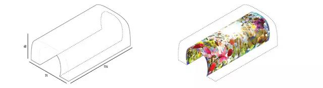 40米。兩個端頭是透明的玻璃幕墻,頂部是絢麗多彩的繪畫。