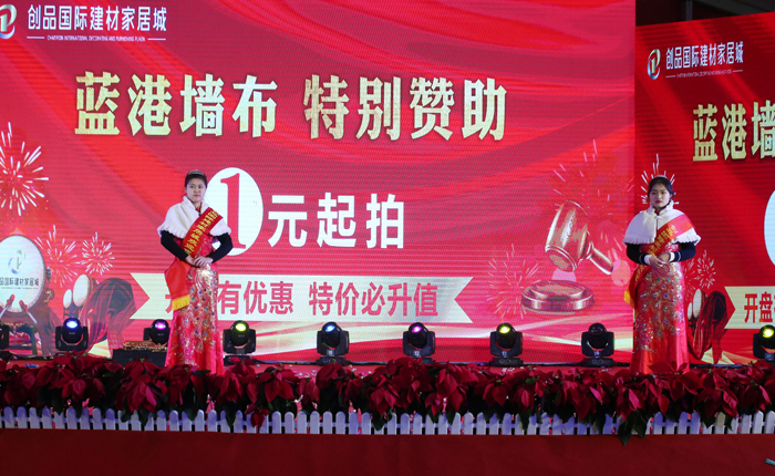開盤儀式隨著創(chuàng)品國際董事長陳春平先生敲響銅鑼聲中宣布創(chuàng)品國際建材家居城正式開盤。