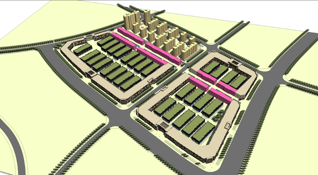 本項目總體布局分三個層次:第一層次為地塊北面緊鄰322國道,商業(yè)價值面最高,建議水泥路左側緊鄰國道處規(guī)劃箱體式建筑(預計引進主力品牌店紅星美凱龍家具建材賣場);水泥路右側沿國道處規(guī)劃三層商用物業(yè),一層為臨街通鋪,二、三規(guī)劃商務酒店、辦公物業(yè)等;第二層次在地塊中間,以專業(yè)市場鋪面及冷庫、大車停車場功能規(guī)劃為主;第三層次為項目地塊東南側,緊鄰山體,自然環(huán)境較好且安靜,規(guī)劃高層居住物業(yè)。