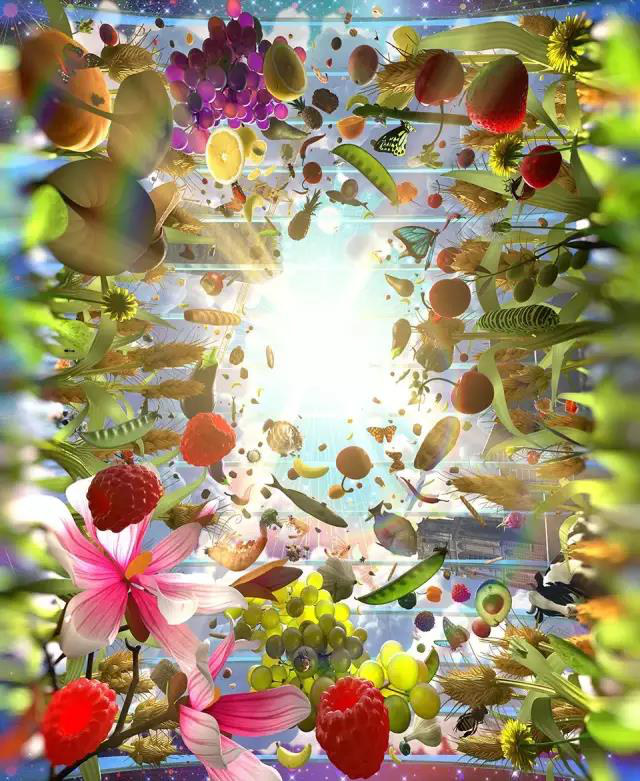 繪畫由鹿特丹藝術(shù)家ArnoCoenen和Iris Roskam合作完成,用PIX的動畫軟件,將水果,魚,面包,鮮花與附近的大教堂